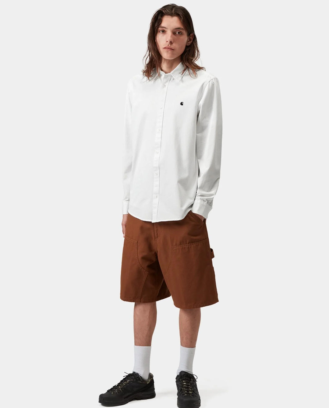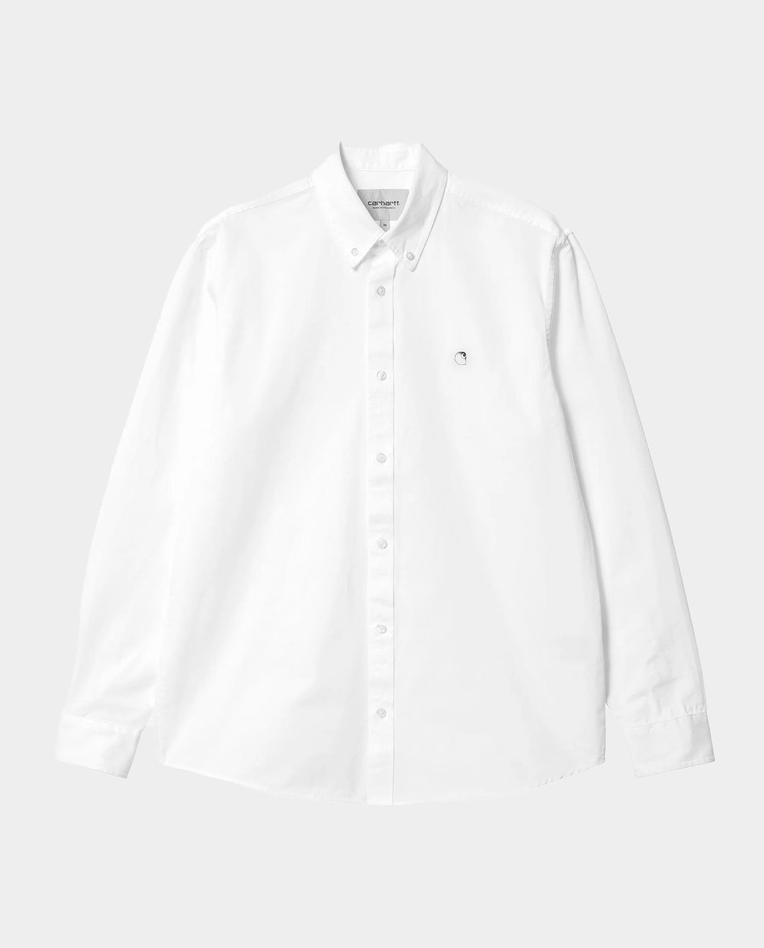 The Carhartt WIP Madison Shirt in White/Black is a refined take on a classic button-up, combining clean lines with subtle branding. Crafted from lightweight cotton twill, this long-sleeve shirt offers a comfortable, breathable feel while maintaining a crisp, structured look. The minimalist design is finished with a discreet embroidered Carhartt “C” logo on the chest, making it a versatile piece that transitions easily between casual and more polished settings.