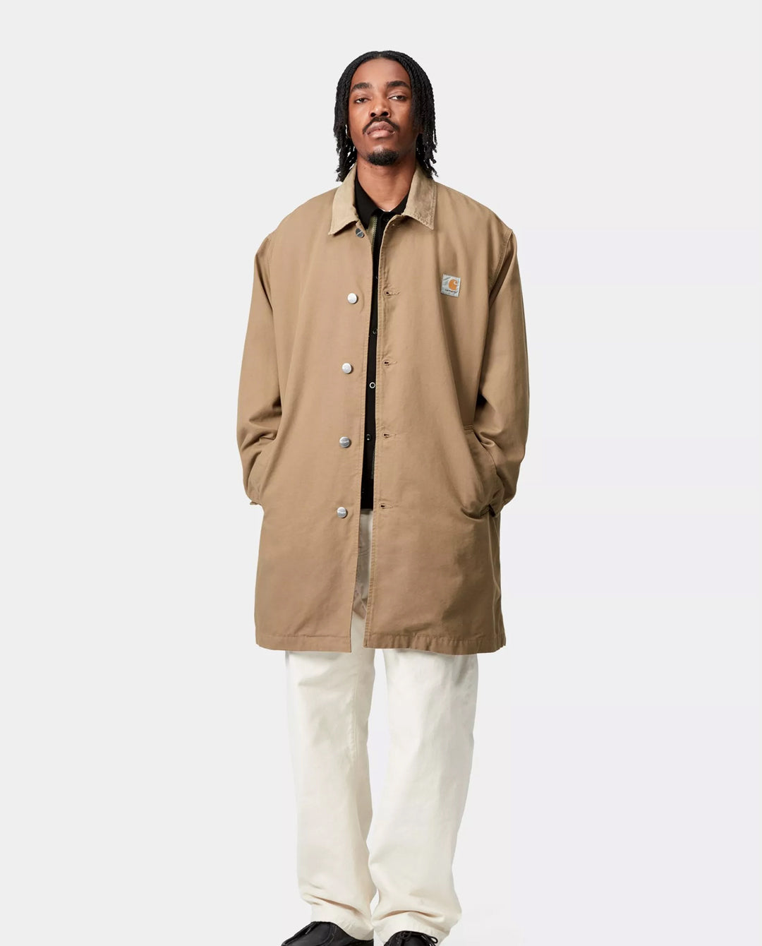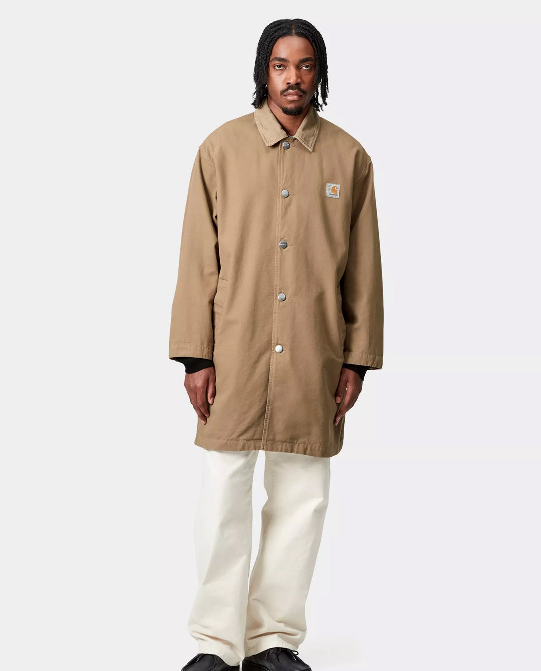 The Carhartt WIP Webster Coat in Leather/Leather Rinsed delivers a contemporary outerwear silhouette rooted in classic workwear influences. Constructed from durable cotton denim with a rinsed finish, this coat offers a structured yet comfortable feel with a clean, tonal appearance. Functional detailing and understated branding complete a versatile layer designed for everyday wear while maintaining a refined, utilitarian edge.