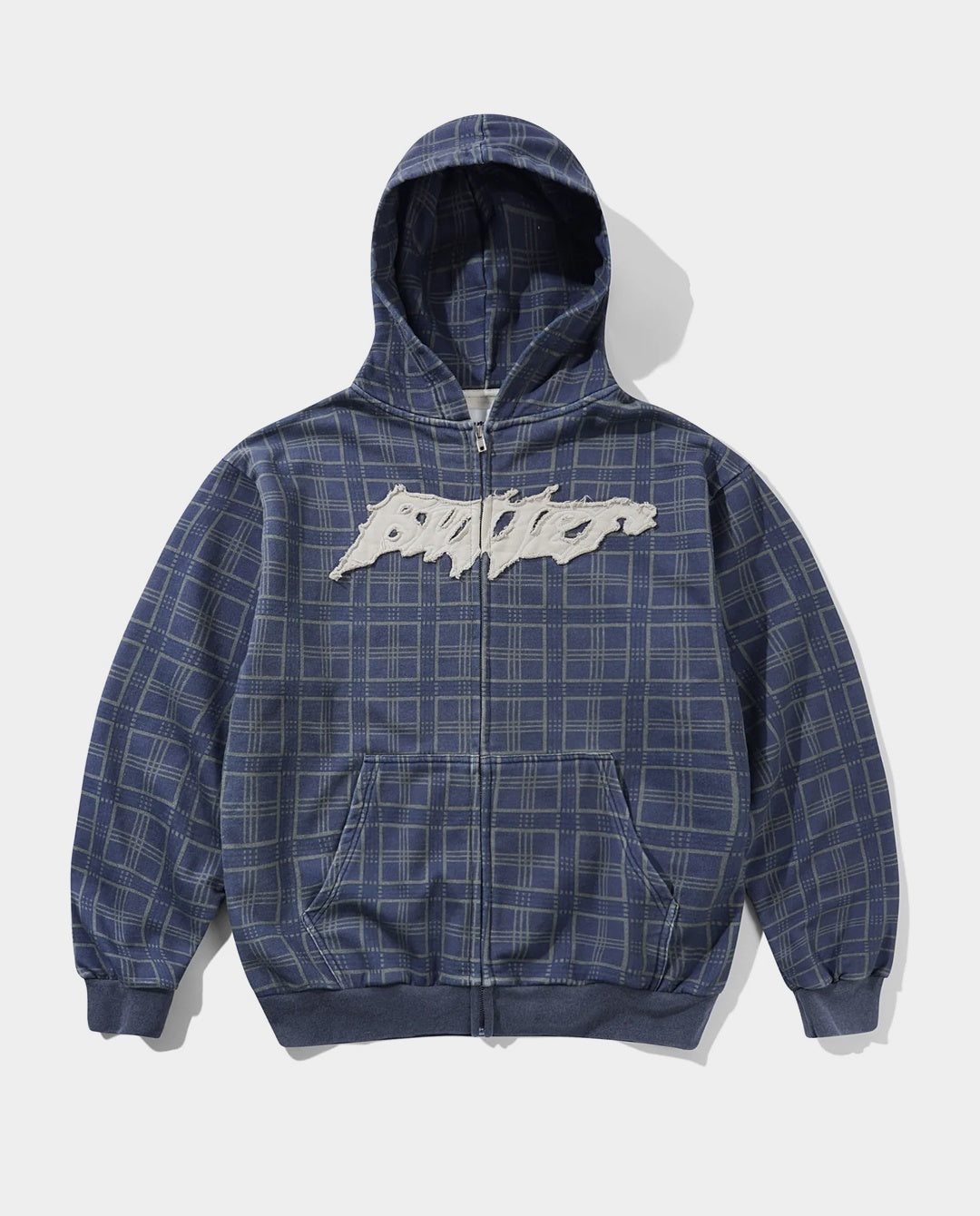 Butter Goods - Amplify Zip-Thru Hoodie - Washed Navy Plaid Hoodies Butter Goods